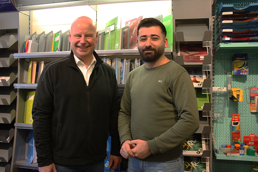 MKS-Prokurist Jochen Biefang (links im Bild) freut sich, dass Firass Merza ab dem kommenden Monat die Papeterie wieder mit Leben füllen möchte.