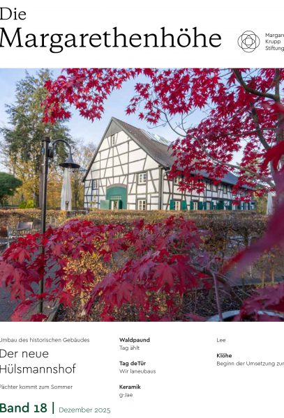 Das Bildmaterial, das wir Ihnen hier anbieten, können Sie für Zwecke der Berichterstattung über die Margarethe Krupp-Stiftung und die Margarethenhöhe herunterladen und kostenlos veröffentlichen. Bitte nennen Sie aber bei einer Veröffentlichung direkt beim Bild den Namen des Bildrechteinhabers Margarethe Krupp-Stiftung.